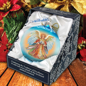 - Glass Christmas Ornament | G. DeBrekht Handblown Mercury Glass Wildlife Holiday D??cor Made from Handblown Mercury Glass Indoor Only Hand-Painted Holiday Splendor Collection It has a satin ribbon and is in a luxurious satin-lined box. Art by G.DeBrekht Approximate size: 3 x 3.5 Handcrafted in the USA The Angel Ball Glass Ornament by G. Debrekht is perfect for your holiday decor. This artfully handcrafted ornament features intricate detailing and a rich color palette, making it ideal for showcasing your love of wildlife. Whether you hang it on your tree or add it to a beautiful centerpiece, this ornament will impress. About Collection: This ƒ??Holiday Splendor Glass Ornaments Collectionƒ? has been inspired by old world-Eastern European families, who for almost 200 years had painted beautiful miniature lacquered paper-m?›ch?? boxes inlaid with mother of pear. It took years of perfecting this technique to establish this new and innovative form of painting that we now proudly present in our exclusive G. DeBrekht Glass ornaments. As in the old days, they are made from 1.5 mm hand-blown Mercury Glass, silver powdered from the inside and then sandblasted from the outside. Combining colors and multi-layer painting techniques create an iridescent solid effect. We take pride in perfecting every piece by adding touches of gold, finishing them with a lovely satin ribbon, and presenting them in a luxurious satin-lined box. Hand-made in the USA, every piece is unique- and will be passed on to future generations to cherish.
