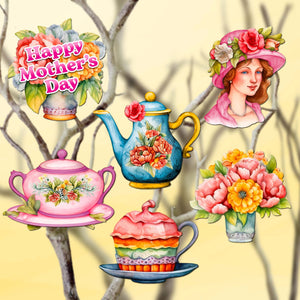 Celebrate Mother's Day with this decorative eco wooden clip-on ornament set of 6 by G. Debrekht. Show mom your appreciation with these charming ornaments featuring a cup of tea, symbolizing relaxation and love. This unique gift brings warmth and sentiment to your Mother's Day decor.