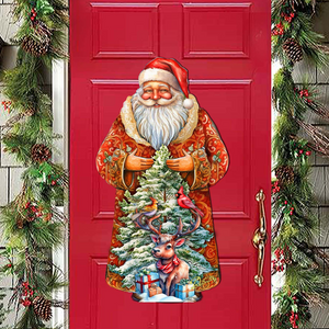 Welcome the holiday season with the Santa with Forest Friends Holiday Door Decor by G. Debrekht. This charming Christmas decoration depicts Santa Claus surrounded by friendly forest creatures, bringing joy and warmth to any doorstep. Handcrafted with meticulous detail, this door Decor is a festive addition to your home.