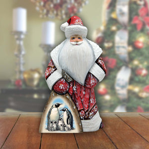 Penguin's Family Santa in Red Hand-Painted WOODCARVED Masterpiece by G. DeBrekht - Christmas Decor - 8214822