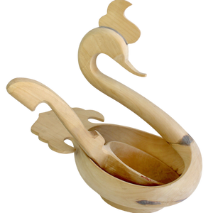 One-of-a-Kind Swan Bowl with Spoon Wood Carved Figurine 17" - Nature Wood Carving