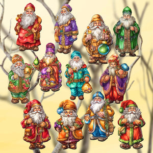 Colorful Santa Clip-On Eco Wood Decorative Ornaments Set of 12 by G. Debrekht - Christmas Decor - 8090050C-S12