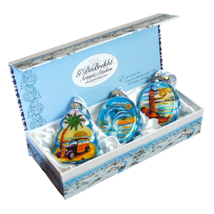- Coastal Mercury Glass Ornaments Set of 3 by G. DeBrekht - Designocracy Vintage Glass Christmas Ornaments! No Christmas tree is complete without a collection of festive ornaments hanging on Its branches! - you're sure to find just the best ones at the official G. Debrekht Christmas Shop. Car Woody, Dolphins, and Lighthouse ornaments handmade in the USA.
