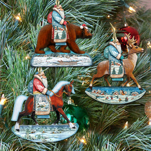 - Riding Santa Wooden Ornaments Set of 3 by G. DeBrekht - Christmas Santa Snowman Decor - 8100016S3