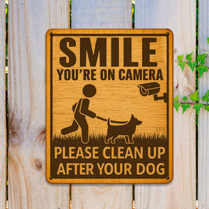 - Smile You’re on Camera Wooden Sign – Clean Up After Your Dog – Handcrafted Outdoor Yard Sign by Designocracy – Rustic Pet Warning Sign - 961066