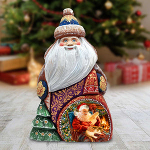 - House Warming Santa Figurine - GDeBrekht Limited Edition This exquisite Christmas D??cor from G. DeBrekht is a masterfully crafted House Warming Santa Wood carved Figurine that brings warmth and joy to any home. Adorned with meticulous detailing, it elevates your Christmas decoration with sophistication.
