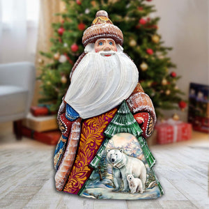 - Polar Bear with Cub Santa Hand-Painted WOODCARVED Figurine by G. DeBrekht - Christmas Santa Snowman Decor - 8208016