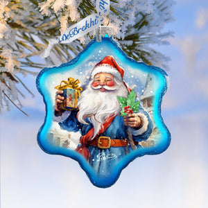 his beautiful ornament makes a perfect gift for Santa. Crafted by G. Debrekht, this gorgeous glass snowflake features a festive Santa design. Make your holiday season memorable with this delightful decoration.