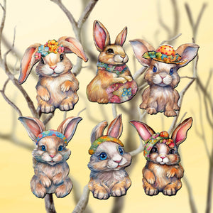Easter Bunnies Clip-On Eco Wood Decorative Ornaments Set of 6 by G. Debrekht - Easter Decor - 8090042C-S6