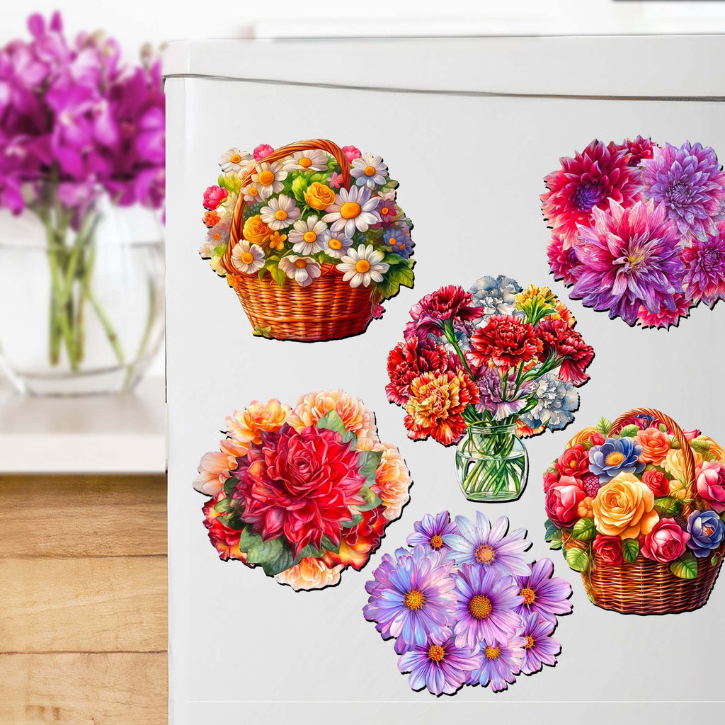 Bouquet of Flowers Decorative Eco Wood Magnets Set of 6 by G. Debrekht - Love Family Decor - 8090076G-S6